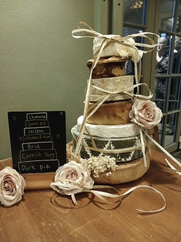 Rather than a traditional cake, Brad & Maria opted for a stunning savoury cake mixing layers of pork pie, chicken pie & game pie with Stilton, Brie and Cornish Yarg which was enjoyed alongside their evening buffet. Their party ended with a fantastic live set from band On The One and dancing til late and plenty of prop filled photo’s in the photo booth.